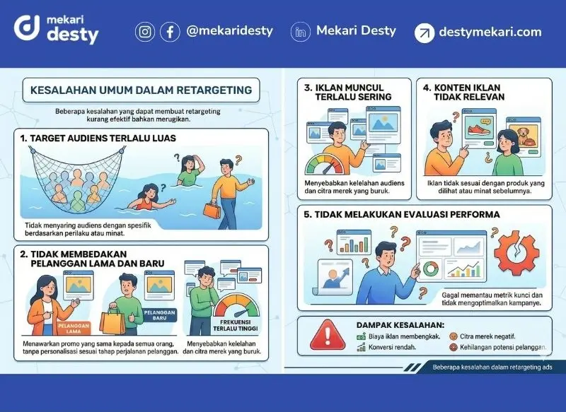 Meski terlihat sederhana, ada beberapa kesalahan yang sering membuat retargeting kurang efektif. Hal ini dikarenakan beberapa kesalahan berikut: