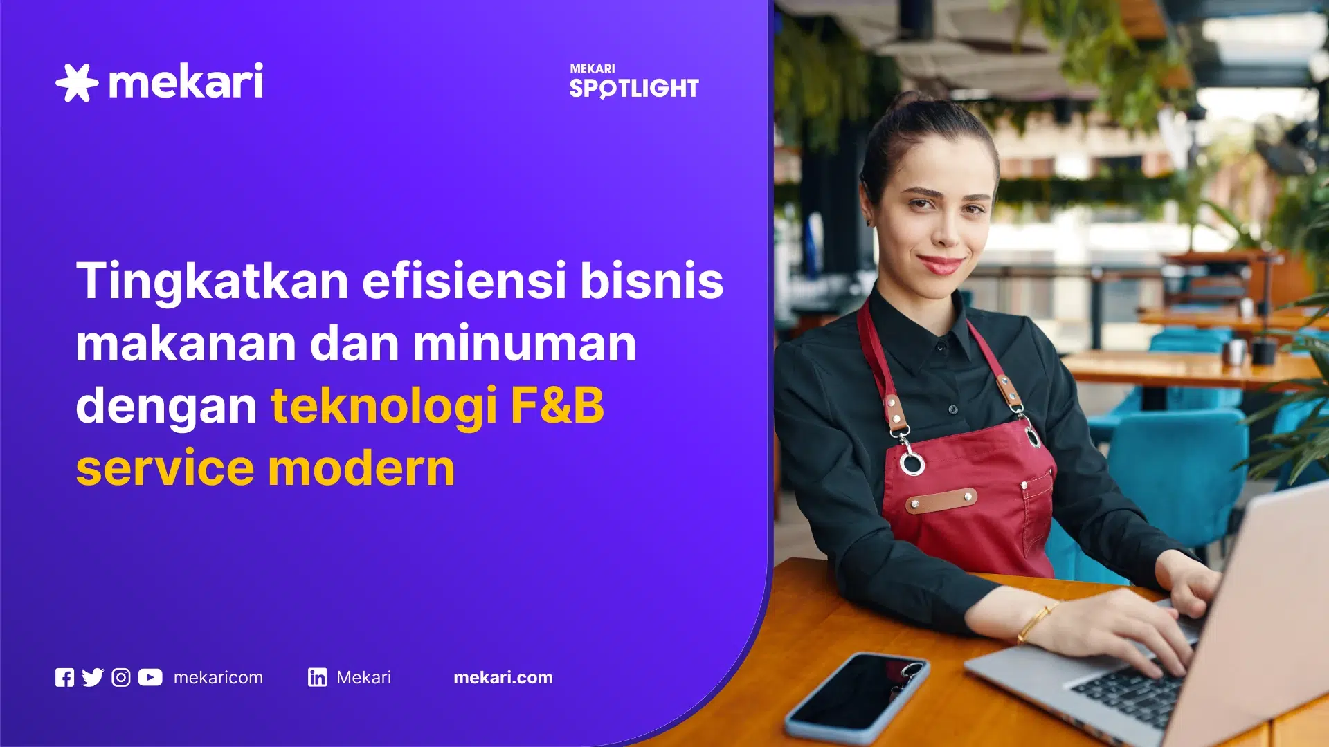 - Mekari menyediakan solusi terintegrasi untuk bisnis F&B yang dapat mengelola bisnis makanan dan minuman secara end-to-end, mulai dari pemesanan, keuangan, layanan pelanggan, hingga manajemen karyawan.