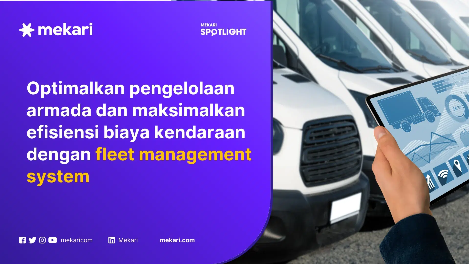 - Mekari adalah ekosistem software terintegrasi yang dapat membantu perusahaan mengelola armada, memantau performa kendaraan, dan mengontrol biaya operasional secara real-time.