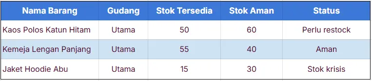 - Laporan stok barang bantu jaga persediaan tetap terkendali dan akurat