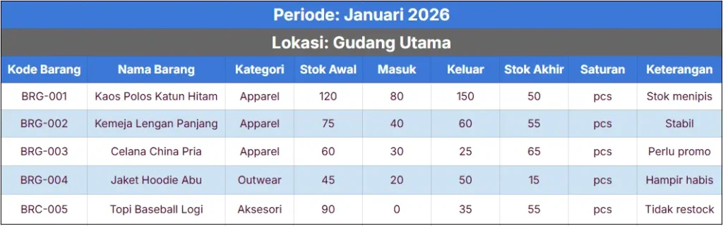 A. Contoh Laporan Stok Barang Gudang (Sederhana)